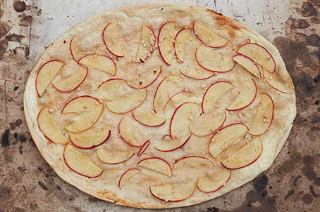 Das Kerngehäuse der Äpfel entfernen und die Äpfel in kleine Würfel schneiden. Die Apfelstücke in eine feuerfeste Form (z. B. eine Grillpfanne oder kleine Auflaufform) geben und mit dem Amaretto marinieren.